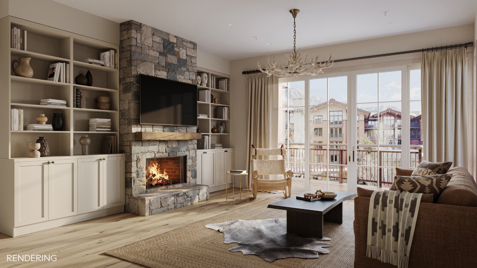 Crystal Springs #302 features three bedrooms and four bathrooms with refined, high-quality finishes. A full studs remodel is scheduled to wrap up within the next month, and elevates the ski-in condo with white oak floors, Sub Zero and Wolf appliances, and Baldwin hardware throughout. The spacious covered terrace extends the living space outdoors and is accessed directly from both the primary suite and the main living area—an ideal setting for après-ski or evening relaxation. From sunrise to sunset, take in unobstructed views of Rendezvous Peak while enjoying the comfort and convenience of one of Teton Village's most desirable slope-side residences.